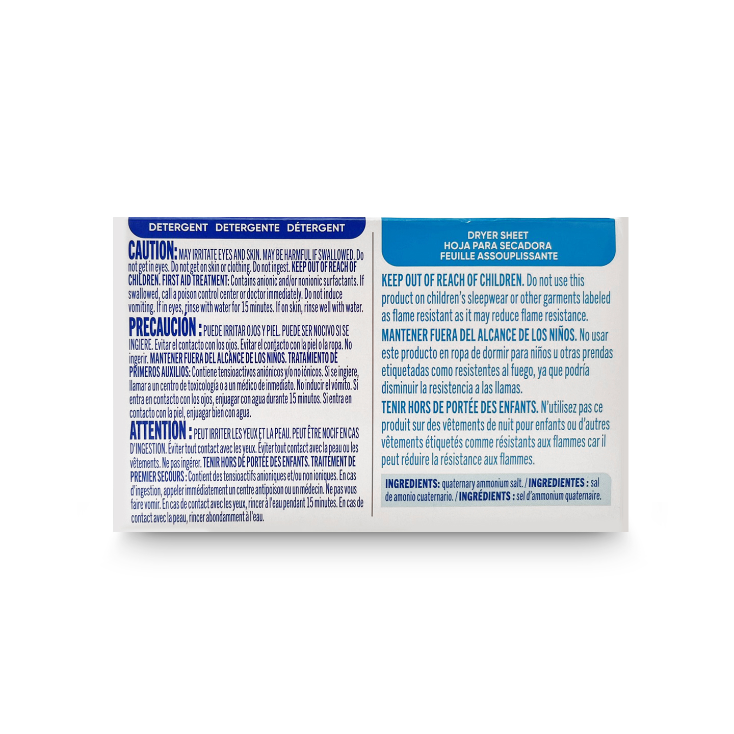 Convenient dual pack contains everything you need for perfectly clean clothes, with a single-serve pack of a detergent and a dryer sheet. Dermatologist recommended detergent is free of perfumes and clear of dyes, making it a great choice for consumers with sensitive skin. Detergent is designed to work with high efficiency machines and is effective in all water temperatures. Hypoallergenic. Dryer sheets are specially formulated for sensitive skin.