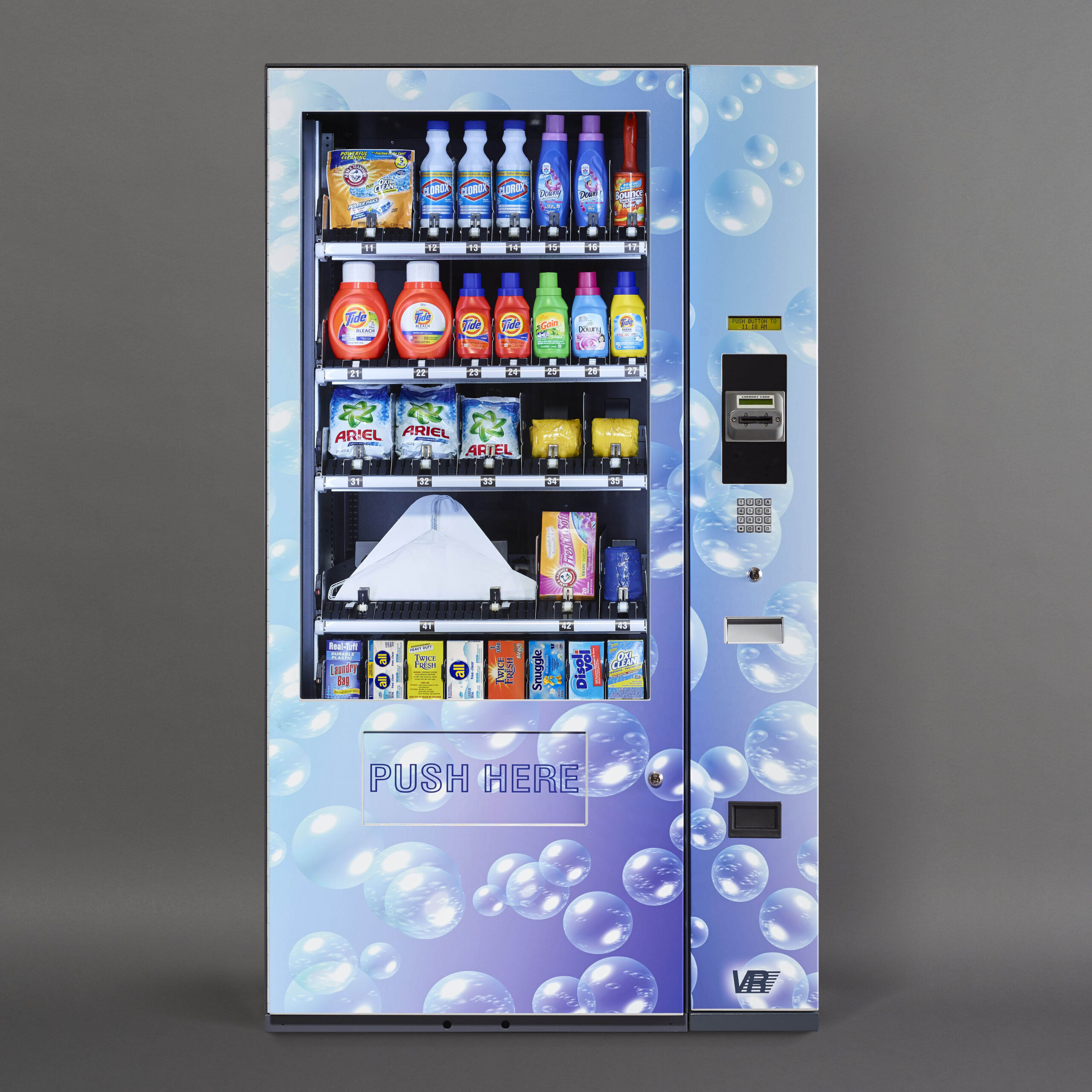 The large elevator of the ES unit lets laundries vend a wide variety of soap products, even really big items like a 75oz bottle of detergent.
